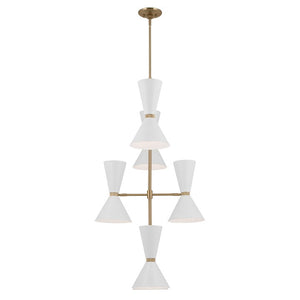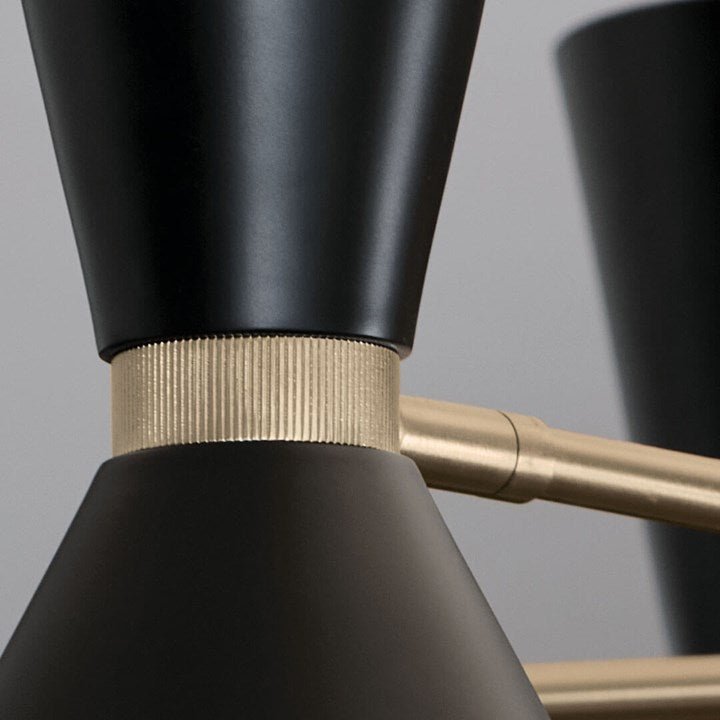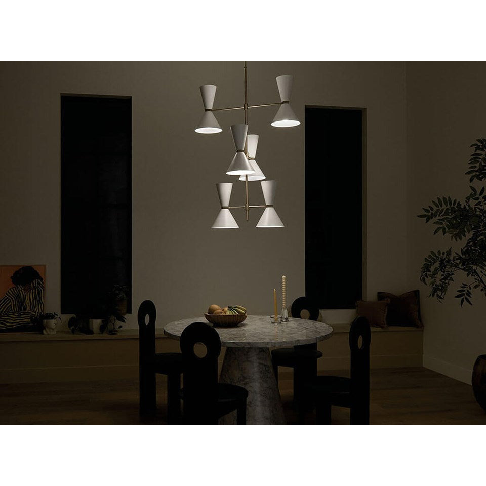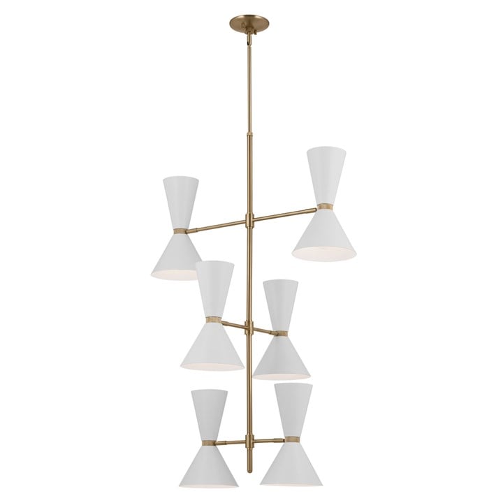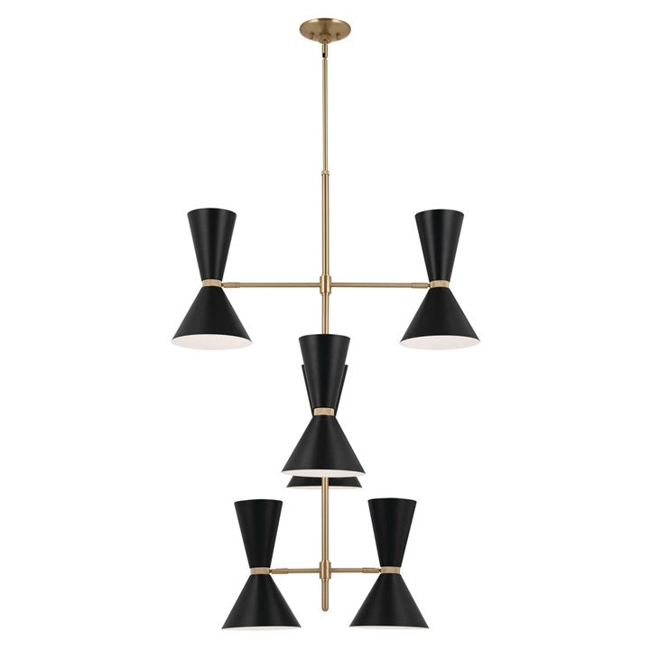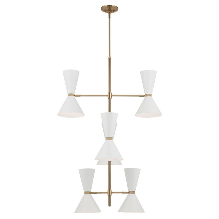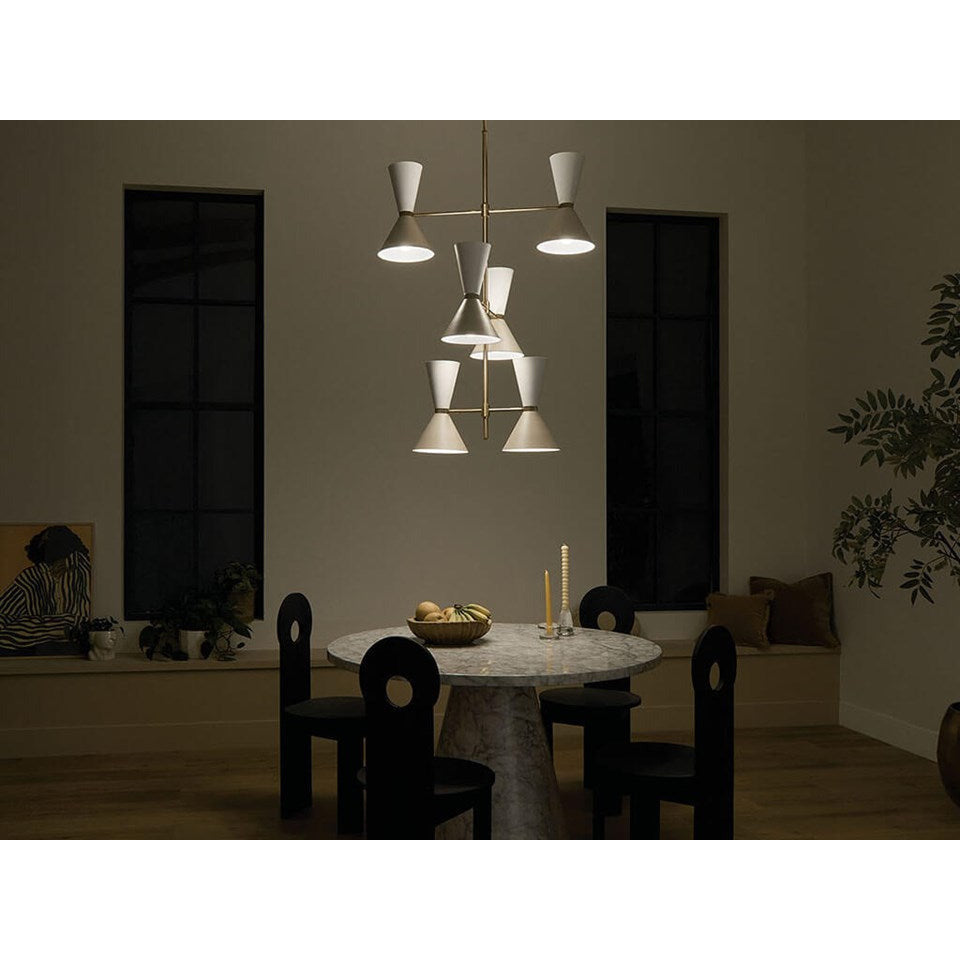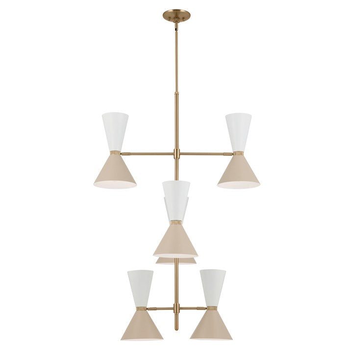 The Phix 12 light chandelier lets you choose your look with the included greige and white shades that pivot as you wish. Light illuminates both up and down for a beautiful effect. With an elegant champagne bronze finish, Phix exudes a modern aesthetic that's edgy, yet livable.