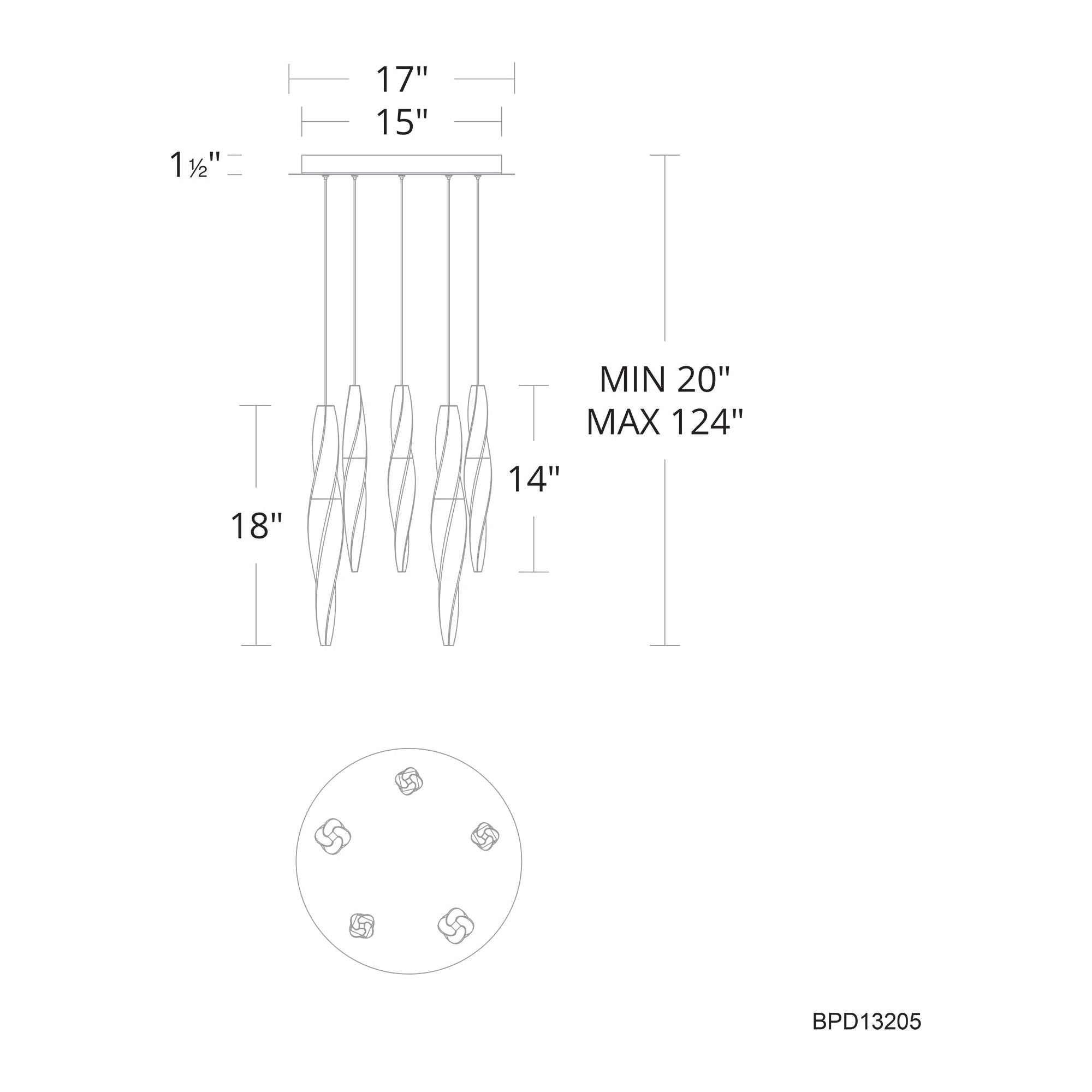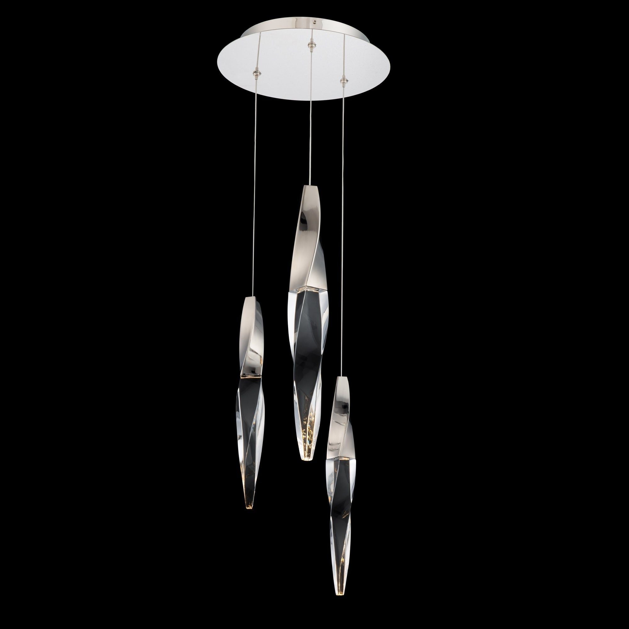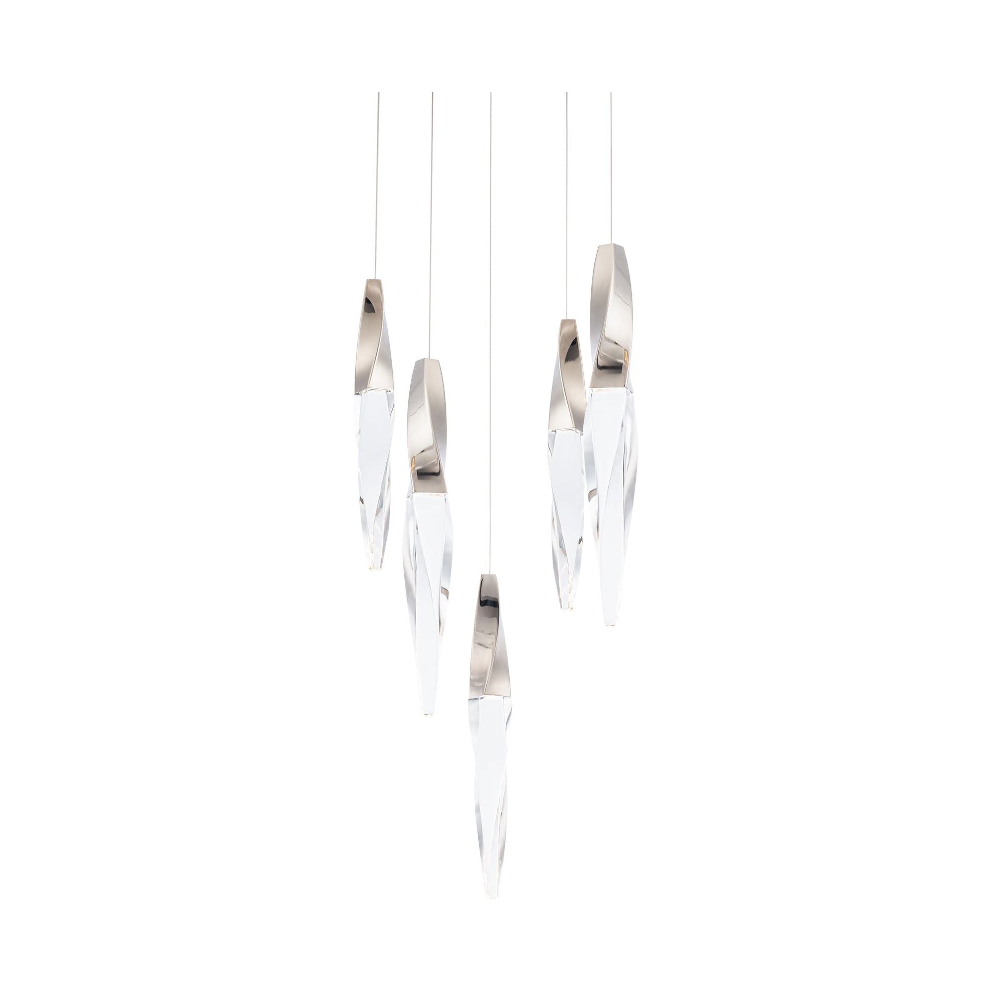 Kindjal 9 Light LED 3000K/3500K/4000K 120V-277V Multi-Light Pendant in Polished Nickel with Clear Optic Crystal