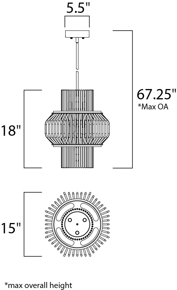 Heavy weight steel cages support a circular band of individual glass rods which run beyond the entire height of the fixtures. A spiraling cluster of G9 LED bulbs refract light in an unusual pattern creating a lighting effect sure to create attention. You can chose between the rounds style in Anthracite and Clear rods or the more transitional faceted shape in Oil Rubbed Bronze with Cognac rods.