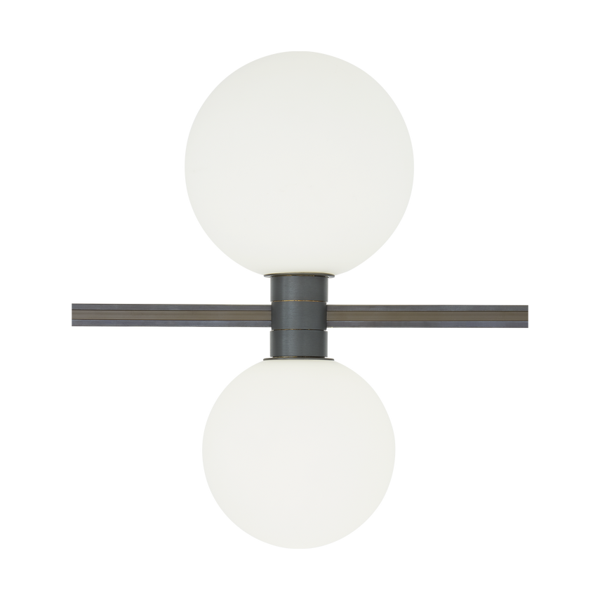 The Orbs Head by Sean Lavin provides versality and functionality to create a modern light sculpture or custom chandelier when mounted on MonoRail. The entire system can be installed close to the ceiling to create drama and beauty in applications with limited ceiling heights or it can be dropped lower into the room to create depth and dimension in a limitless number of forms.