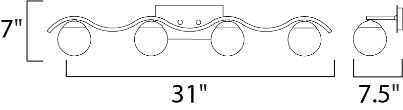 Opal White glass balls suspend from a wave like metal arm finished in Polished Chrome. The clean contemporary design provides excellent illumination and classic design appeal. Brackets can be installed either glass up or down.