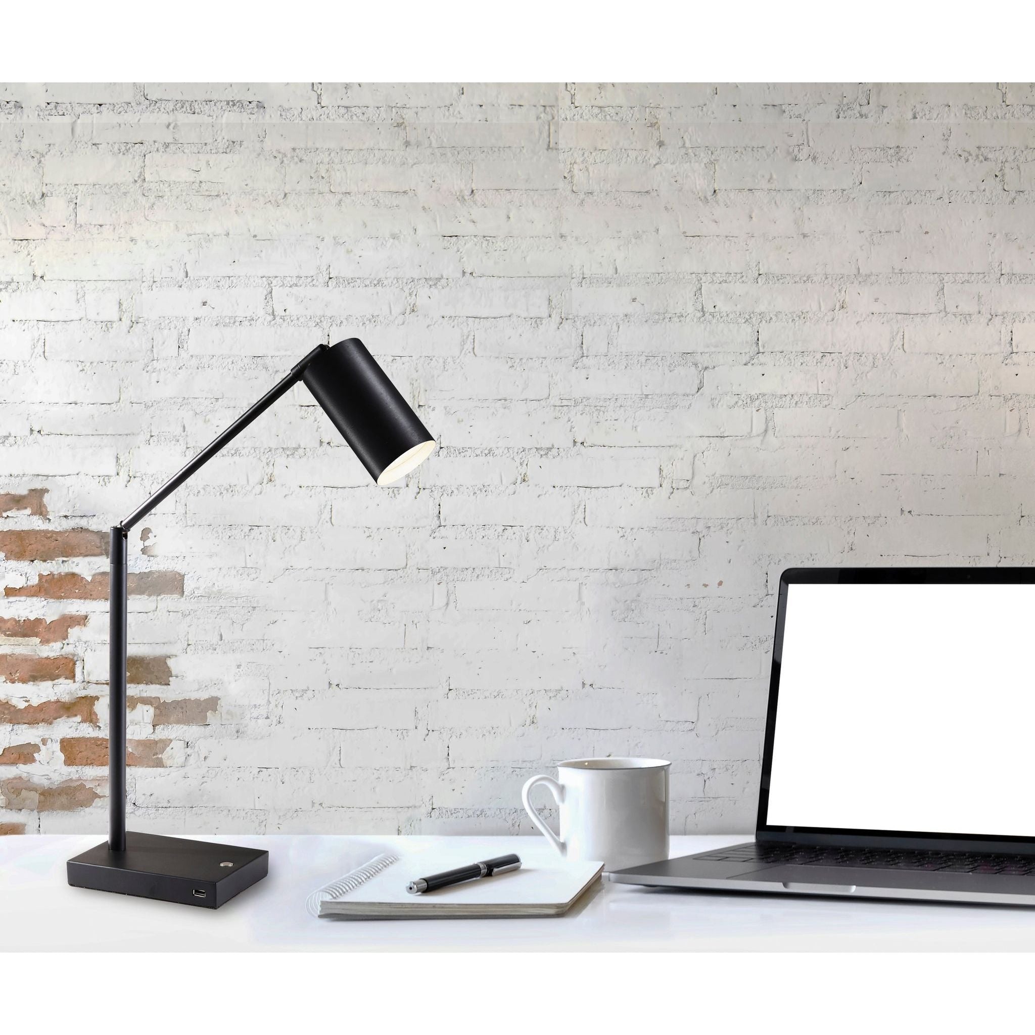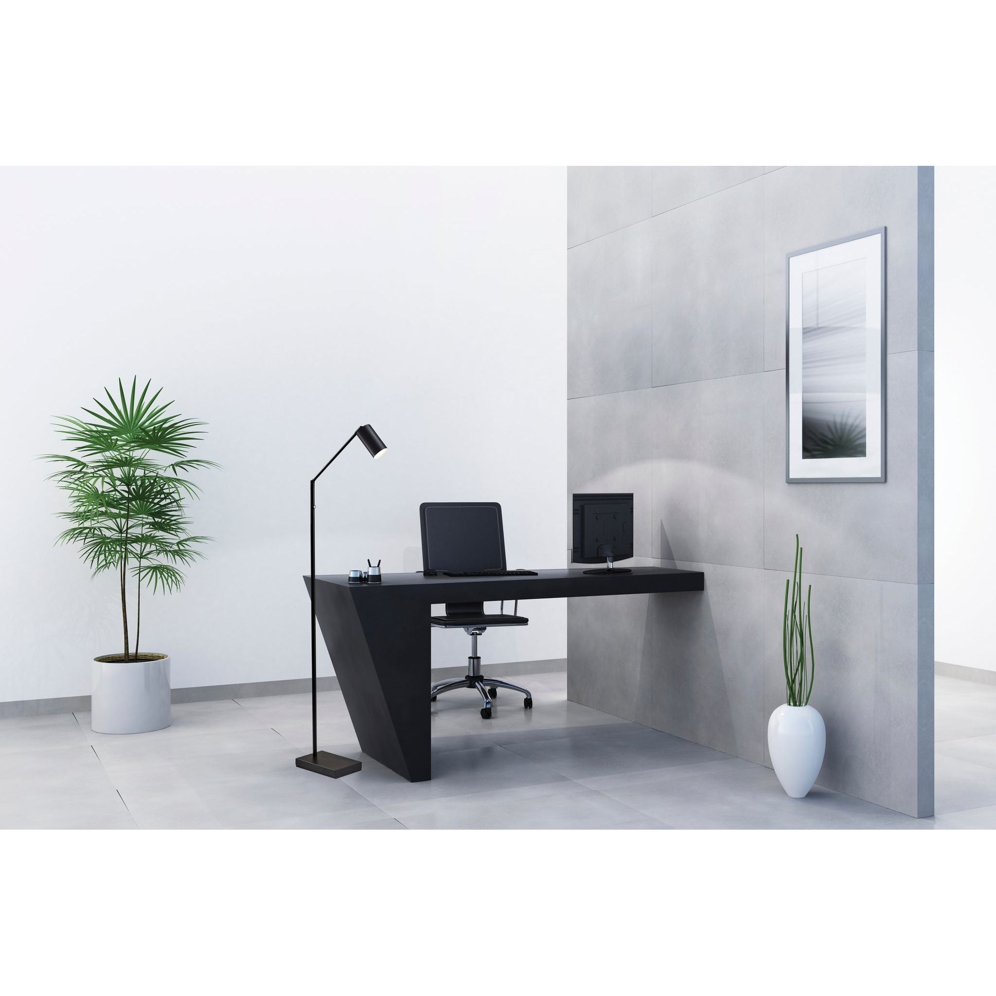 A minimalist, modern style, the Colby LED Floor Lamp is made up of thin, sharp lines and matte black metals. Adjustable at the arm and shade joints, this lamp is perfect for next to the desk or sofa to illuminate all areas of the workspace or reading area. A 9 Watt integrated LED provides 3 different light settings to suit all needs, easily adjusted by a simple touch switch.