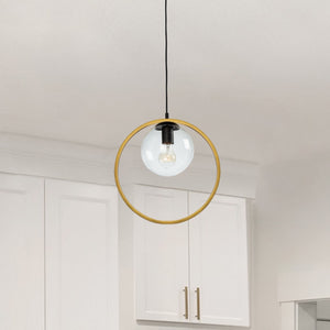 From the Lighting Pulse design firm, this Lugano collection wall sconce features clear round glassware which is complimented by a vintage brass encasing on a black frame.