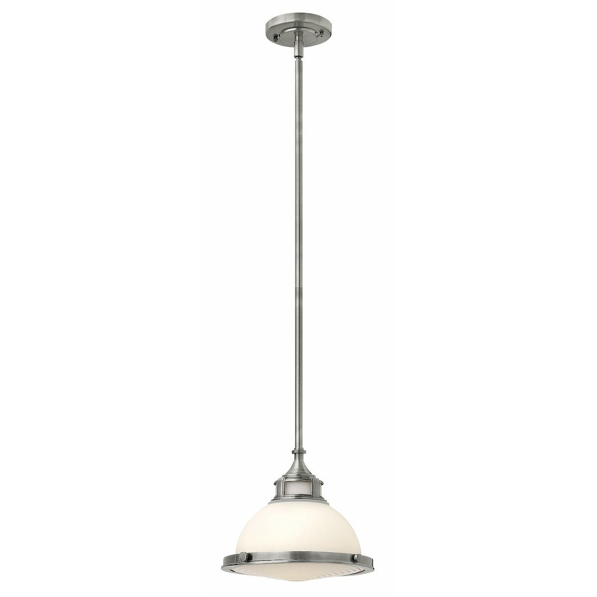 Amelia's classic pendant design reinvents vintage details with a cast glass fitter, cast metal trim ring and ornamental clasps. Buckeye Bronze, Chrome and Polished Antique Nickel finish options glow with retro inspiration.