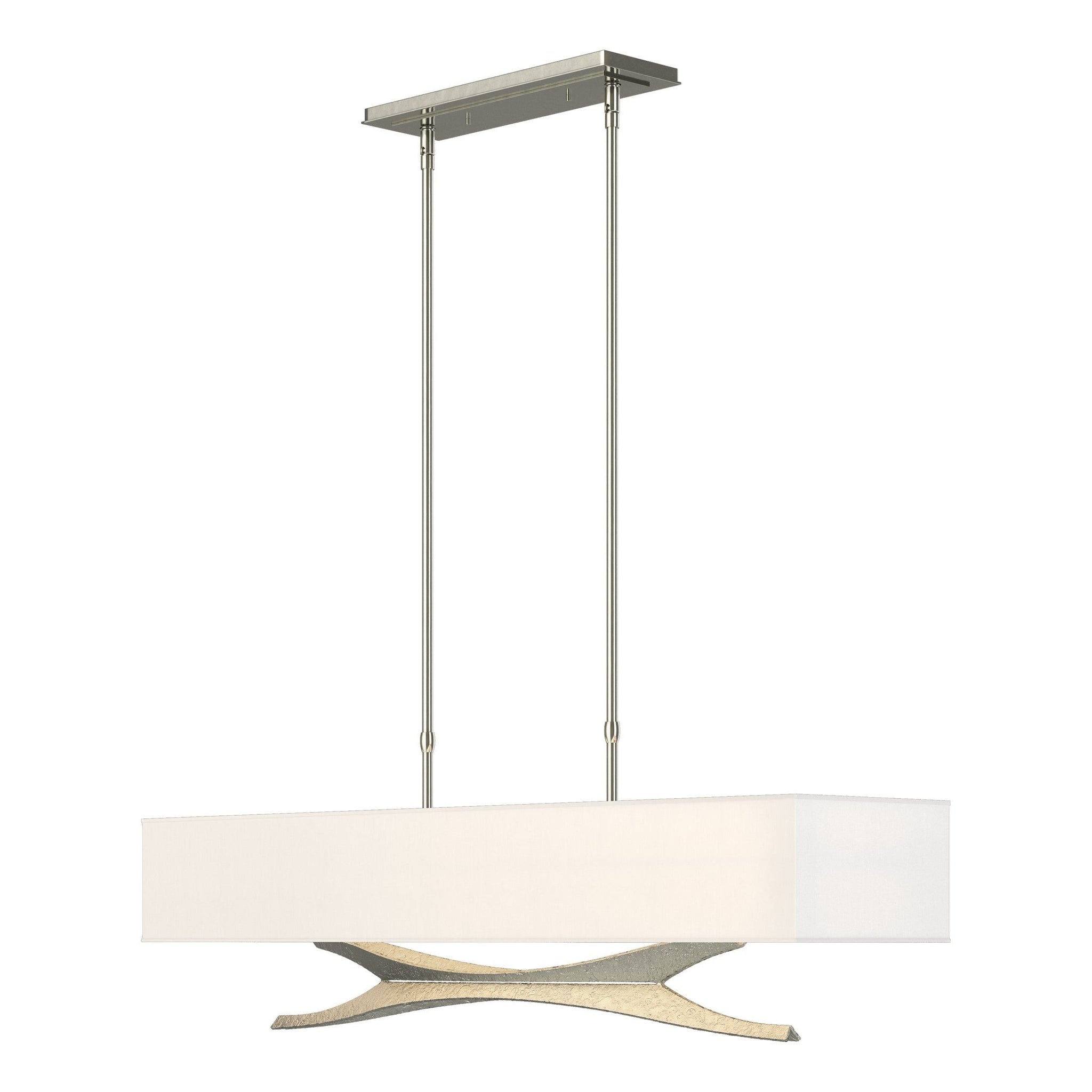The shade of this pendant looks like it is held up by arms of curved steel. There is understated elegance and strength inherent in this design. Crafted by artisans here at our Vermont forge, each piece is unique.