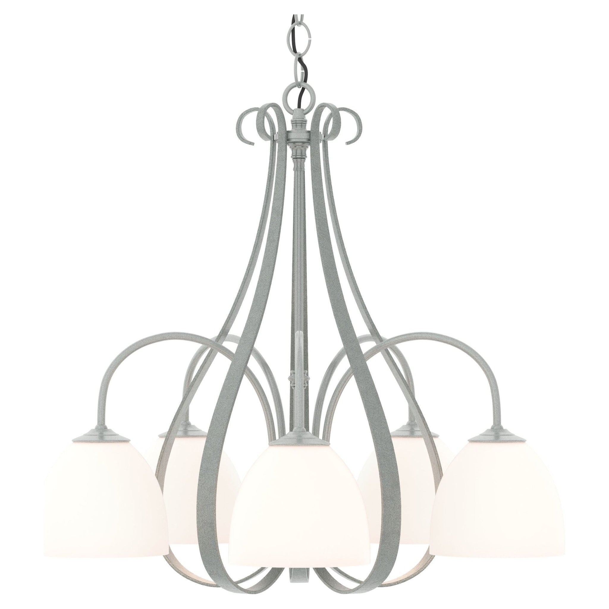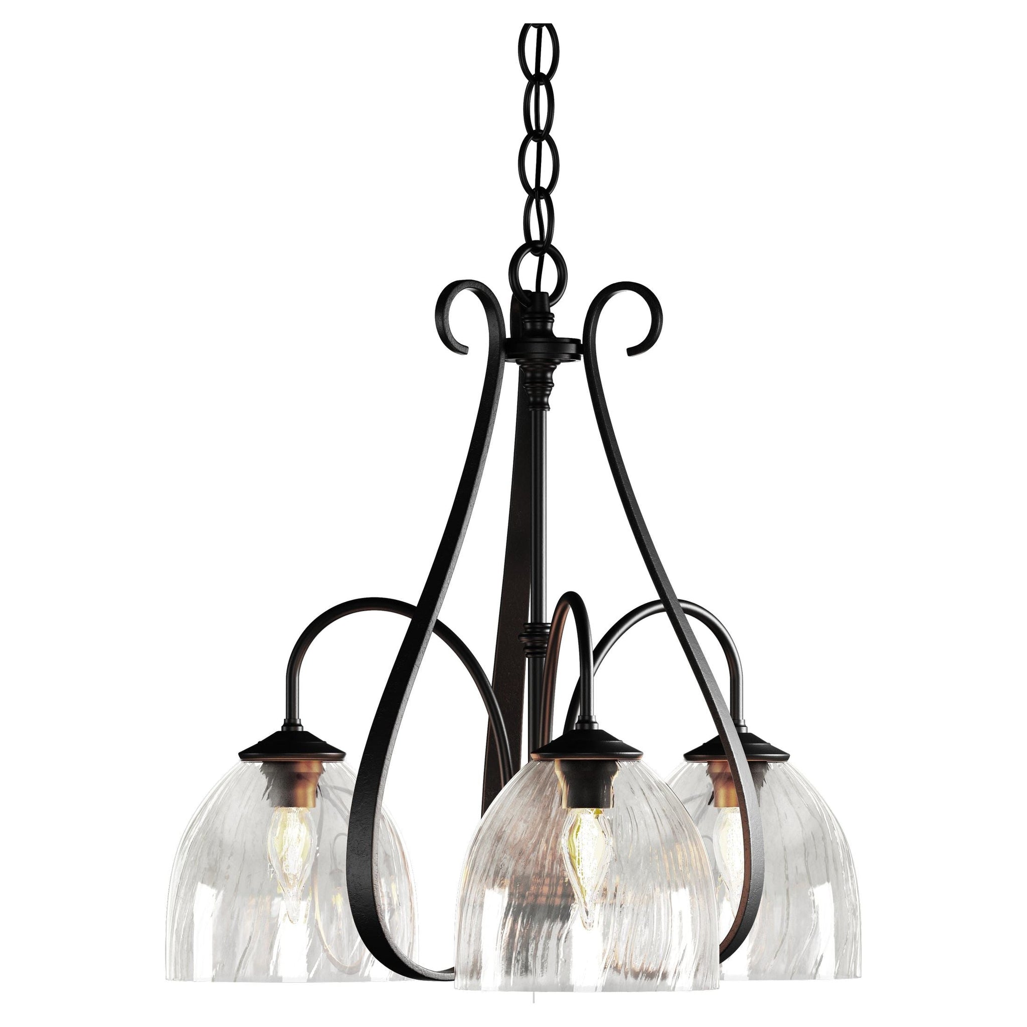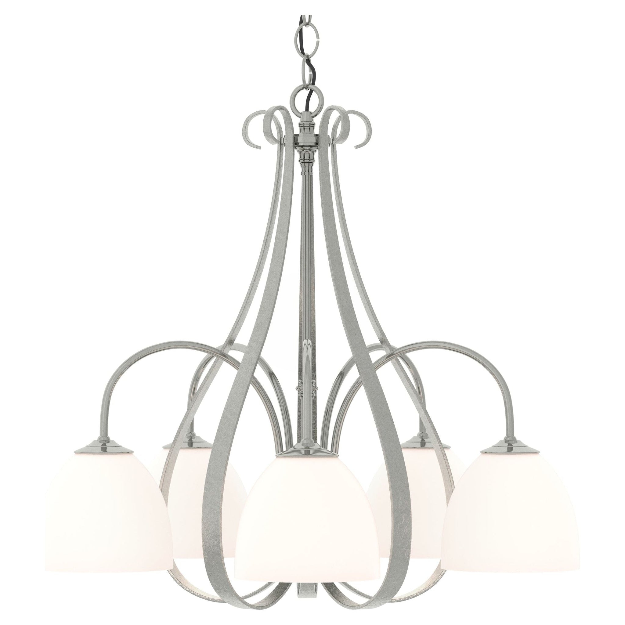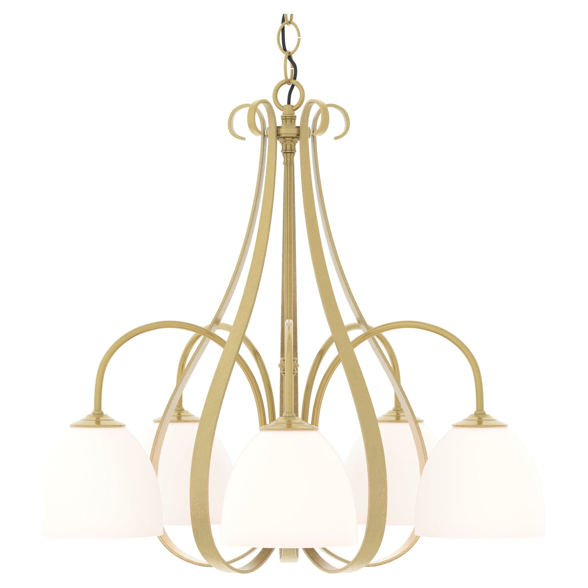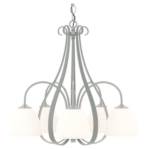 We challenge you to keep your eyes fixed on just one section of this fixture. The hand-shaped steel ribbons and tubes create the visual illusion of movement. Let your eyes follow graceful curves that flow to and from the bell-shaped glass down-lights.