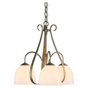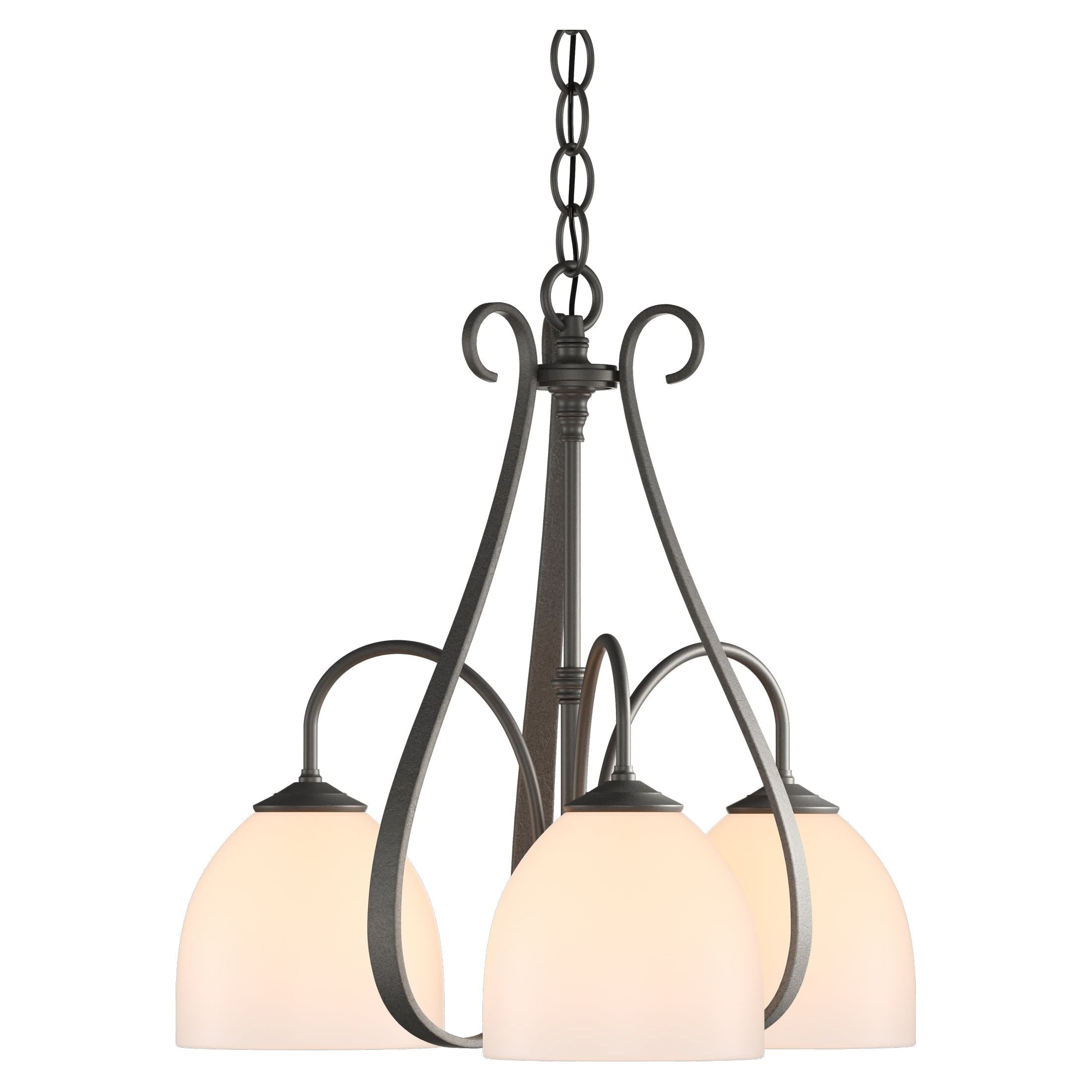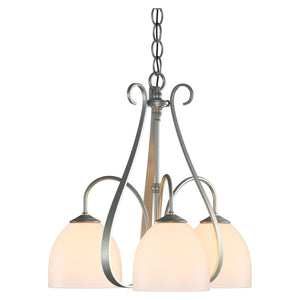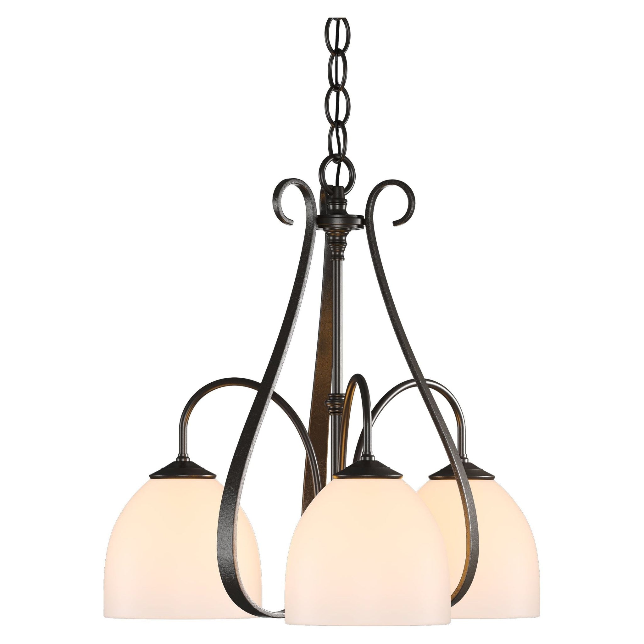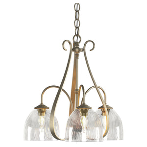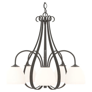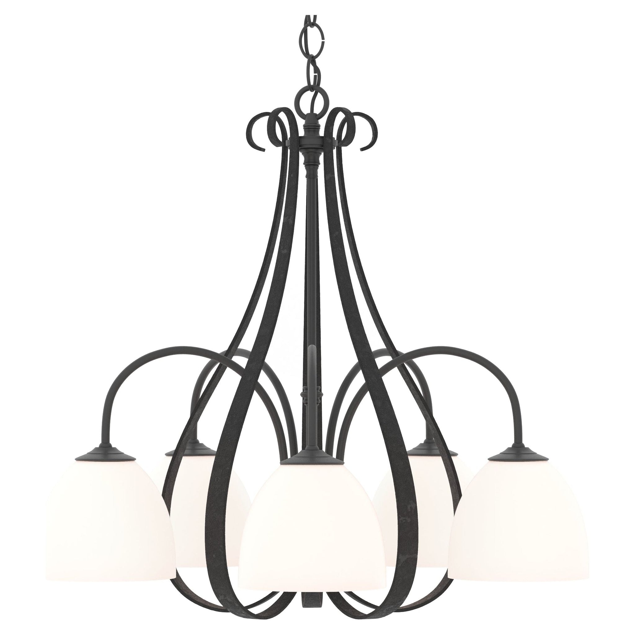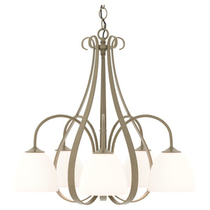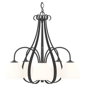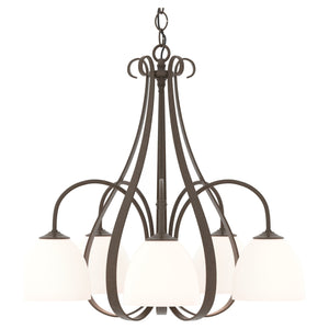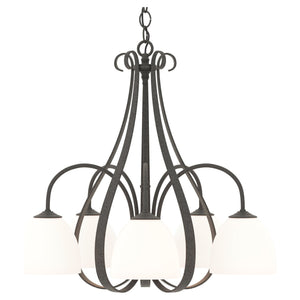 We challenge you to keep your eyes fixed on just one section of this fixture. The hand-shaped steel ribbons and tubes create the visual illusion of movement. Let your eyes follow graceful curves that flow to and from the bell-shaped glass down-lights.