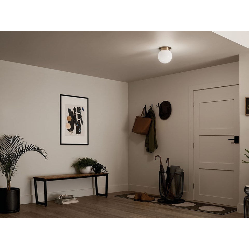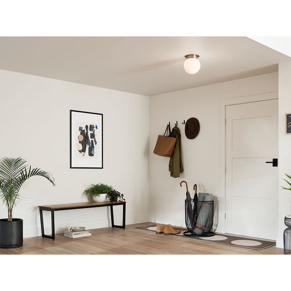 The Albers 1 light flush mount illuminates on its own or in multiples. Its refined black finish complements many design styles. It comes with a globe-shaped opal glass shade.