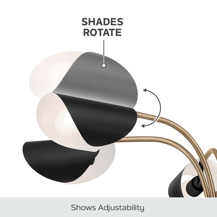 With unique shades inspired by softly cupped leaves and petals, the Arcus 5 light convertible chandelier is as stylish as it is functional. Rotate the shades to direct the light, or convert the entire chandelier into a semi-flush to accommodate your space. Its dual-finish in champagne bronze and black is forever on-trend.
