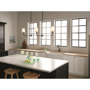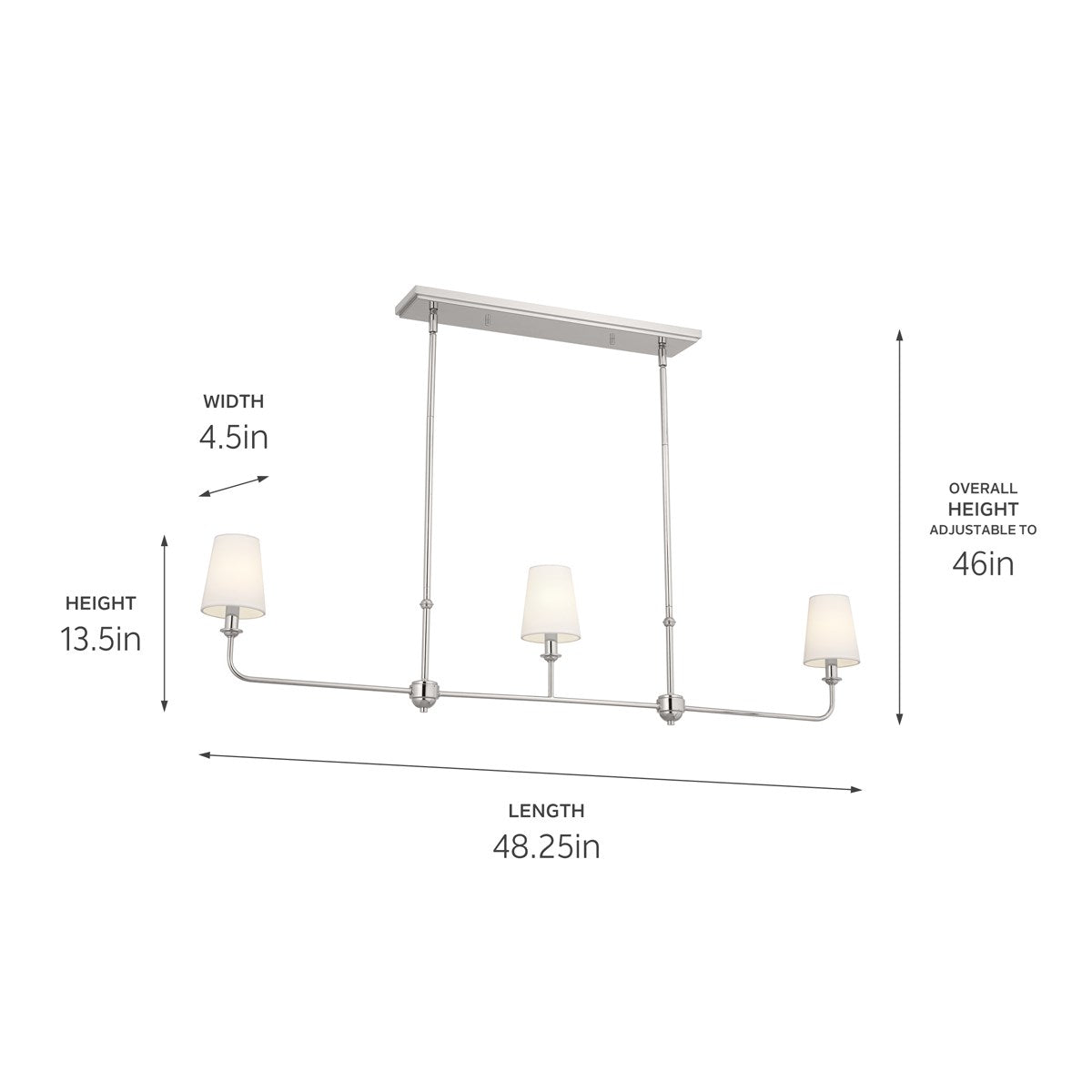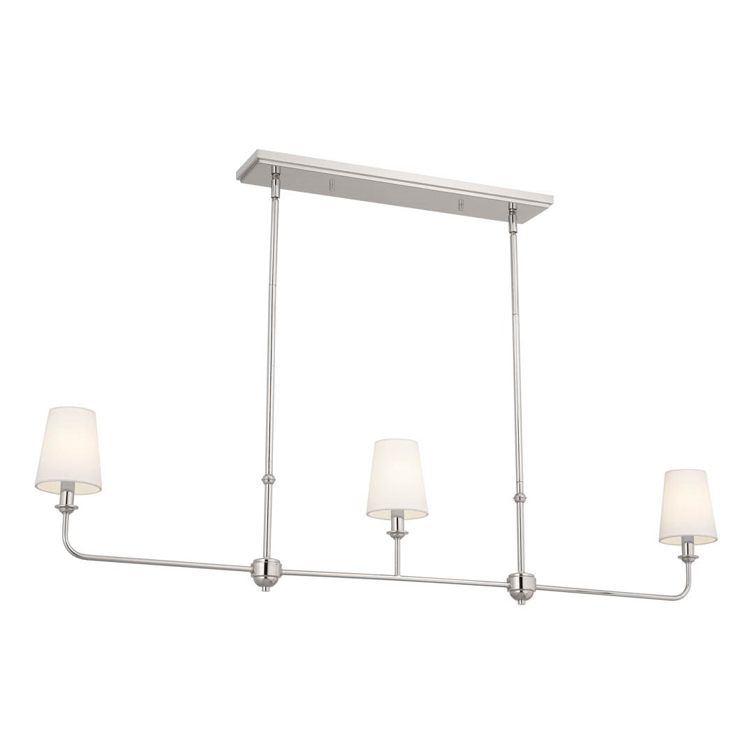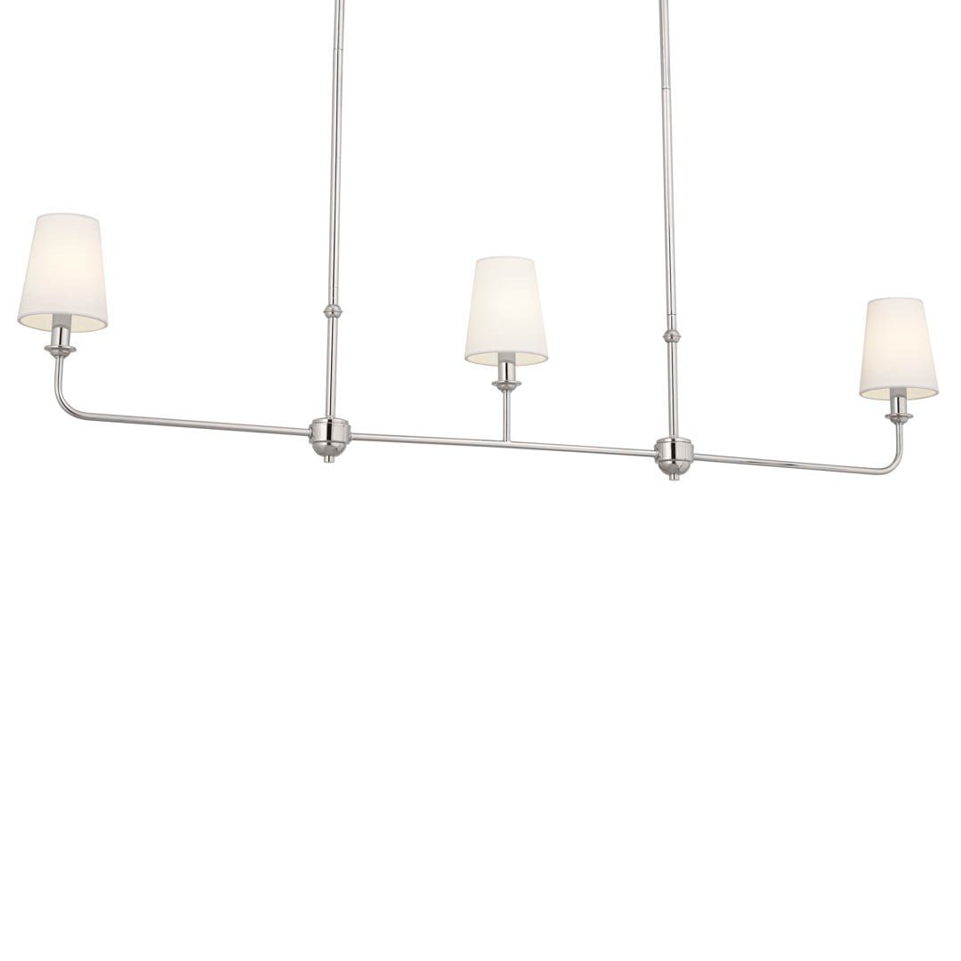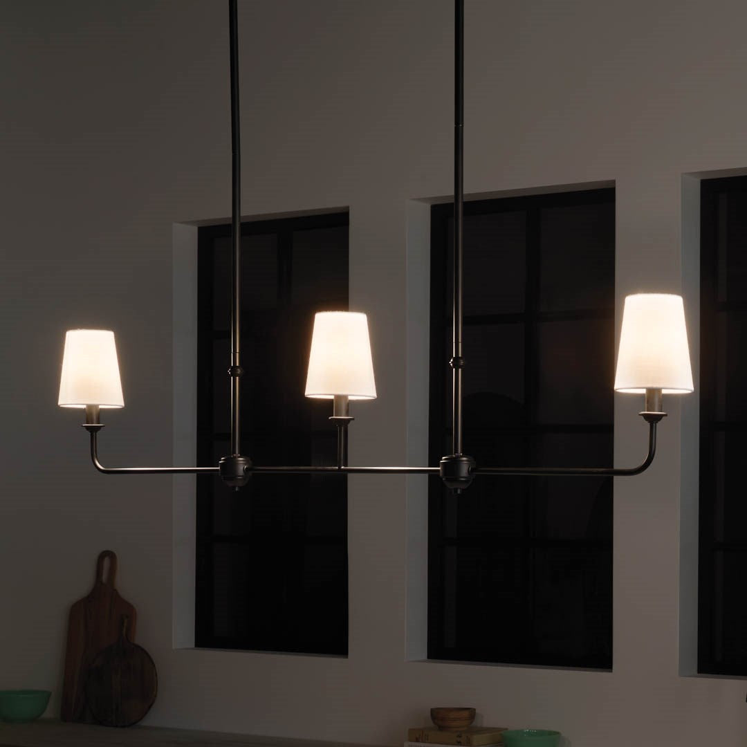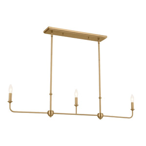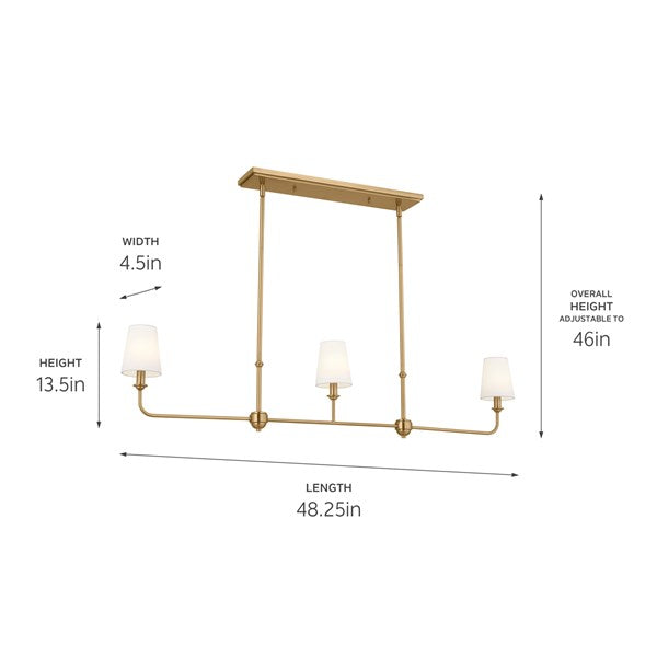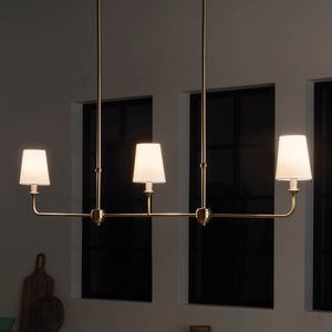 A refined take on the classic chandelier, Pallas in brushed natural brass is delicate with a hint of opulence. Its white linen shades give you ambient illumination while removing them lets you enjoy a classic candelabra. Enjoy customizing it to suit your space.