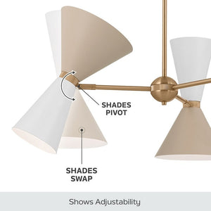 The Phix 12 light chandelier lets you choose your look with the included greige and white shades that pivot as you wish. Light illuminates both up and down for a beautiful effect. With an elegant champagne bronze finish, Phix exudes a modern aesthetic that's edgy, yet livable.