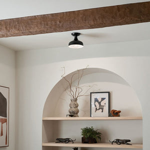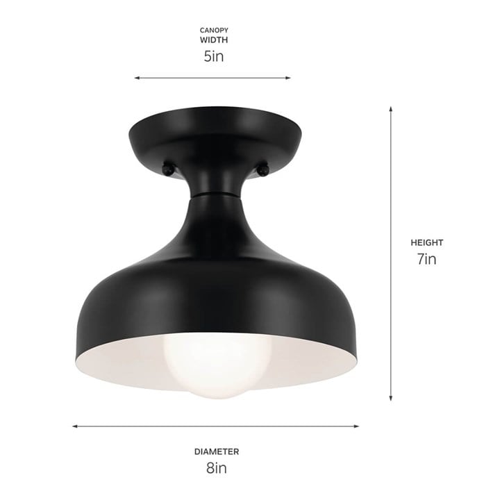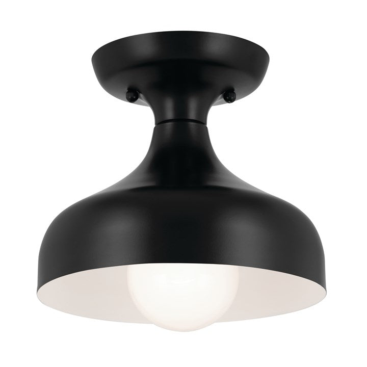 With its continuous transition between the canopy and shade, the Sisu 1 light semi flush exudes a soft elegance. It can be used as a single light, in pairs or in multiples to meet your lighting needs. In the refined black finish, it easily complements your decor.