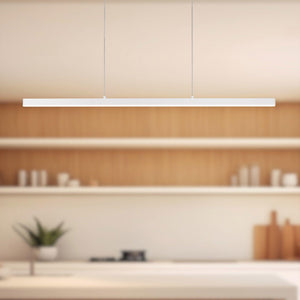 Slim state-of-the-art linear LED pendant brings sophistication to any room it is installed in. Available in brushed nickel, brushed gold, black, and white metal finishes with full length linear frosted acrylic diffuser which when lit diffuses the light evenly below. Provided with our powerful 120V AC LED technology, Available in two different sizes and wall sconces, see series for more details.