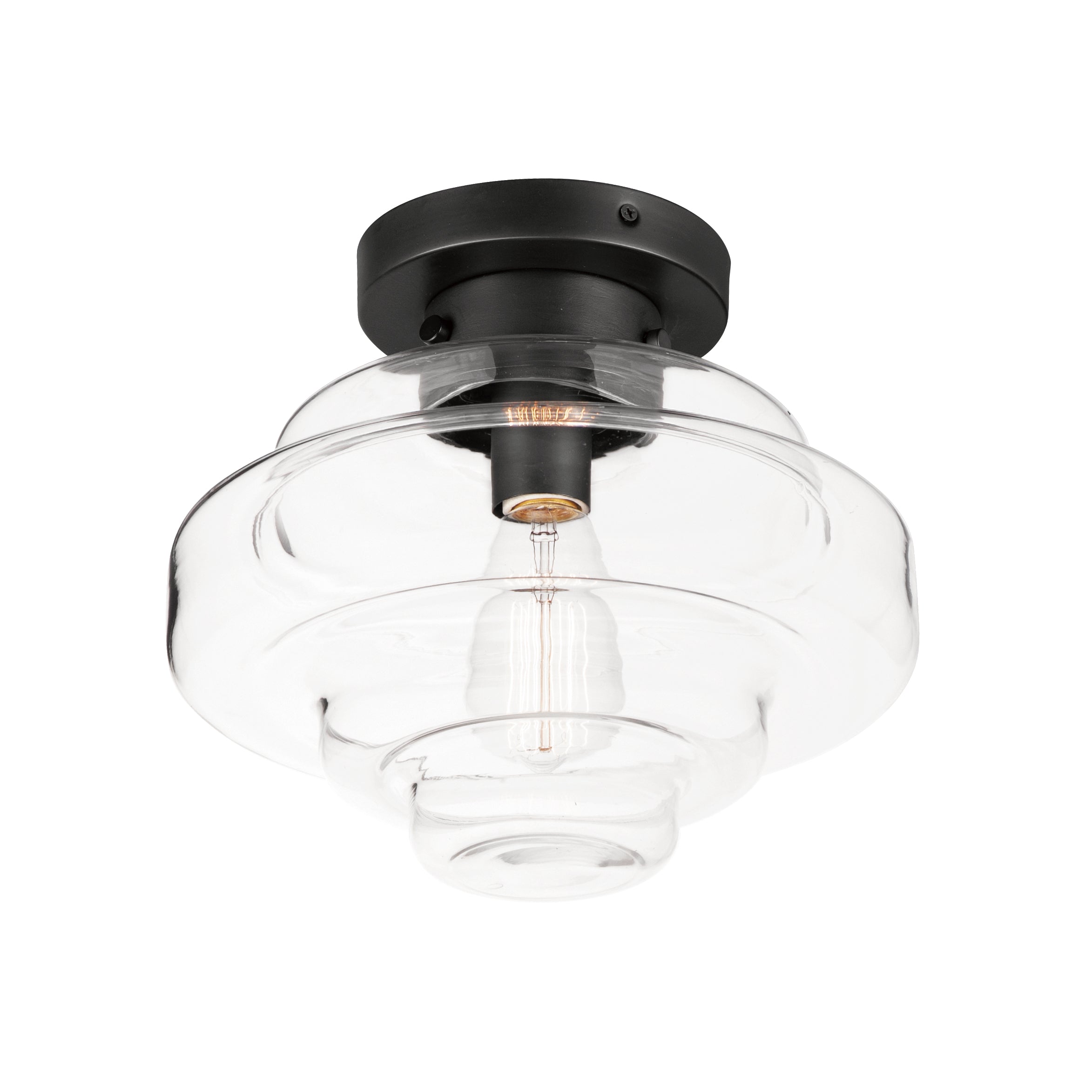 A sizable layered glass oscillates depth and is supported by three industrial set screws for support. Available as a pendant or flush mount, the pendant also features an oversized ring to evoking nautical vibes while remaining minimalist in its design. Available in Satin Brass, Satin Nickel, or Matte Black, pair the clear glass shades with a vintage filament lamps to complete the look.