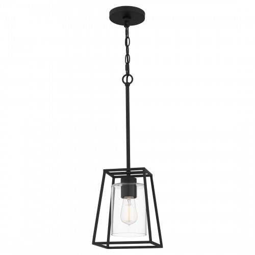 The Prescott mini pendant offers eye-catching, transitional styling for every room. An open lantern silhouette and clear cylindrical glass shade make Prescott the perfect choice for understated style. Choose from either brushed nickel or matte black.